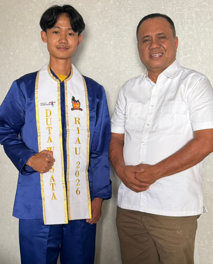 KUANSING – Prestasi generasi muda Kuantan Singingi kembali mencuri perhatian. Bupati Kuantan Singingi, Dr. H. Suhardiman Amby, Ak., MM, memberikan apresiasi tinggi kepada Aidil Fitra Ramadhani, siswa kelas XII SMA yang sukses meraih gelar Putera Kuantan Singingi 2026 Lingkungan dan kini tengah berjuang di ajang Duta Wisata Riau 2026 tingkat provinsi.